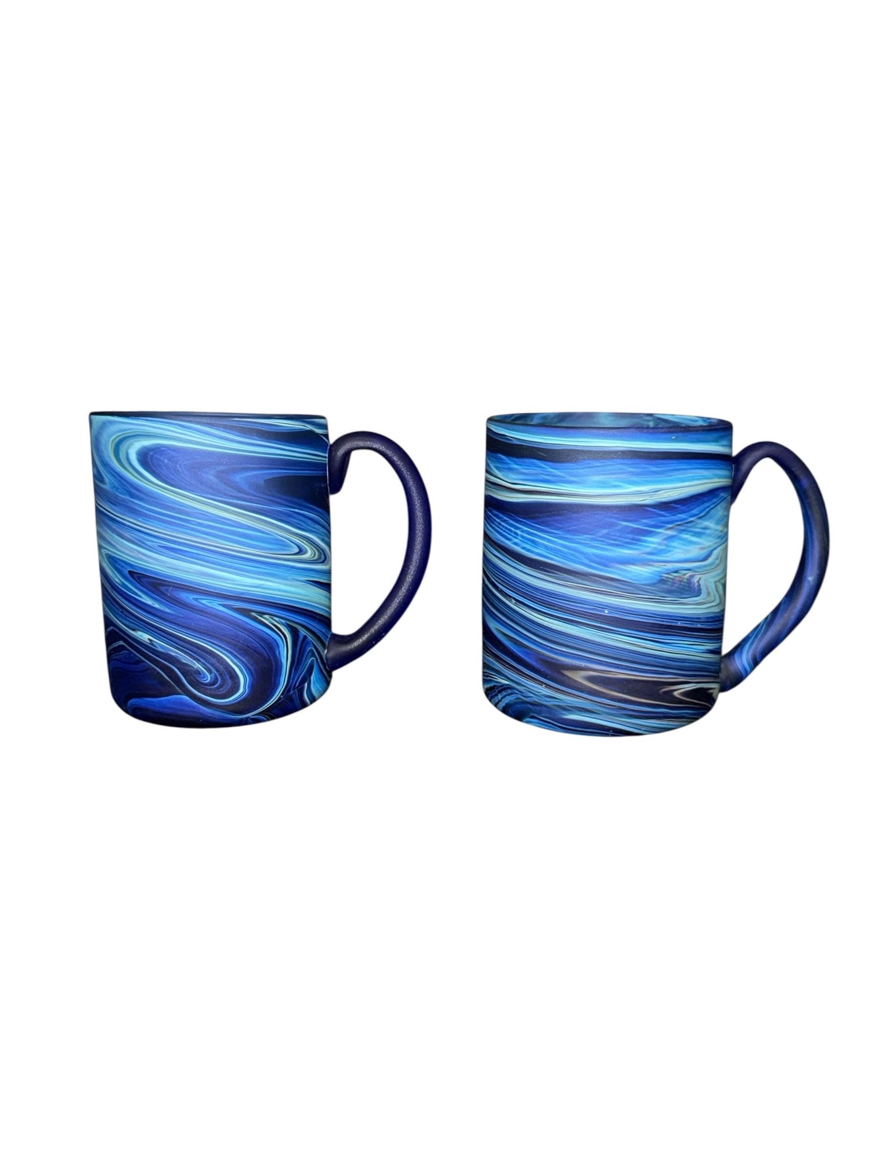 Hand Blown Glass Mugs – Blue Swirl Phoenician Coffee & Tea Cups, Set of 2