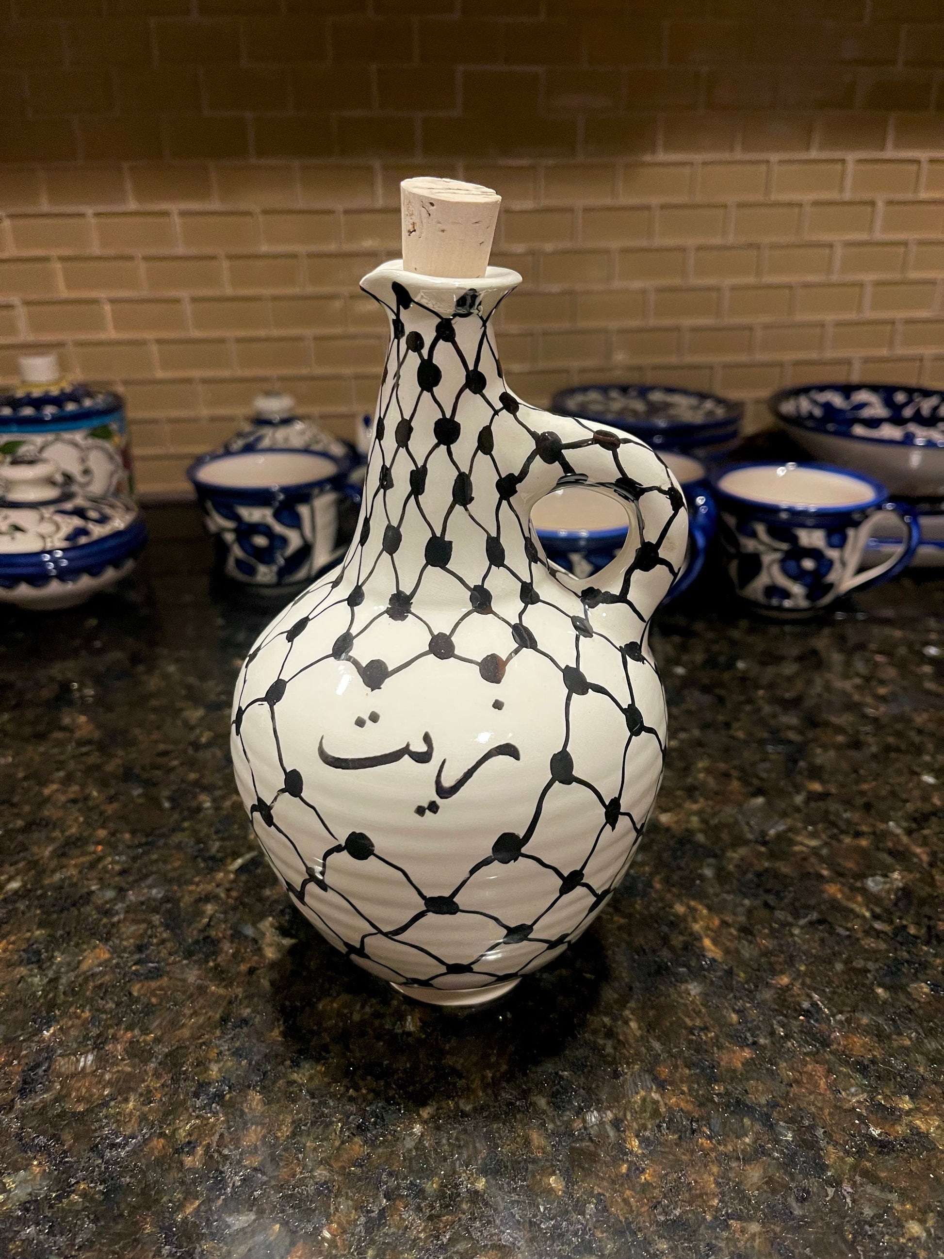 keffiyeh Palestinian Ceramic Oil Dispenser Hand Painted and Handmade in Palestine