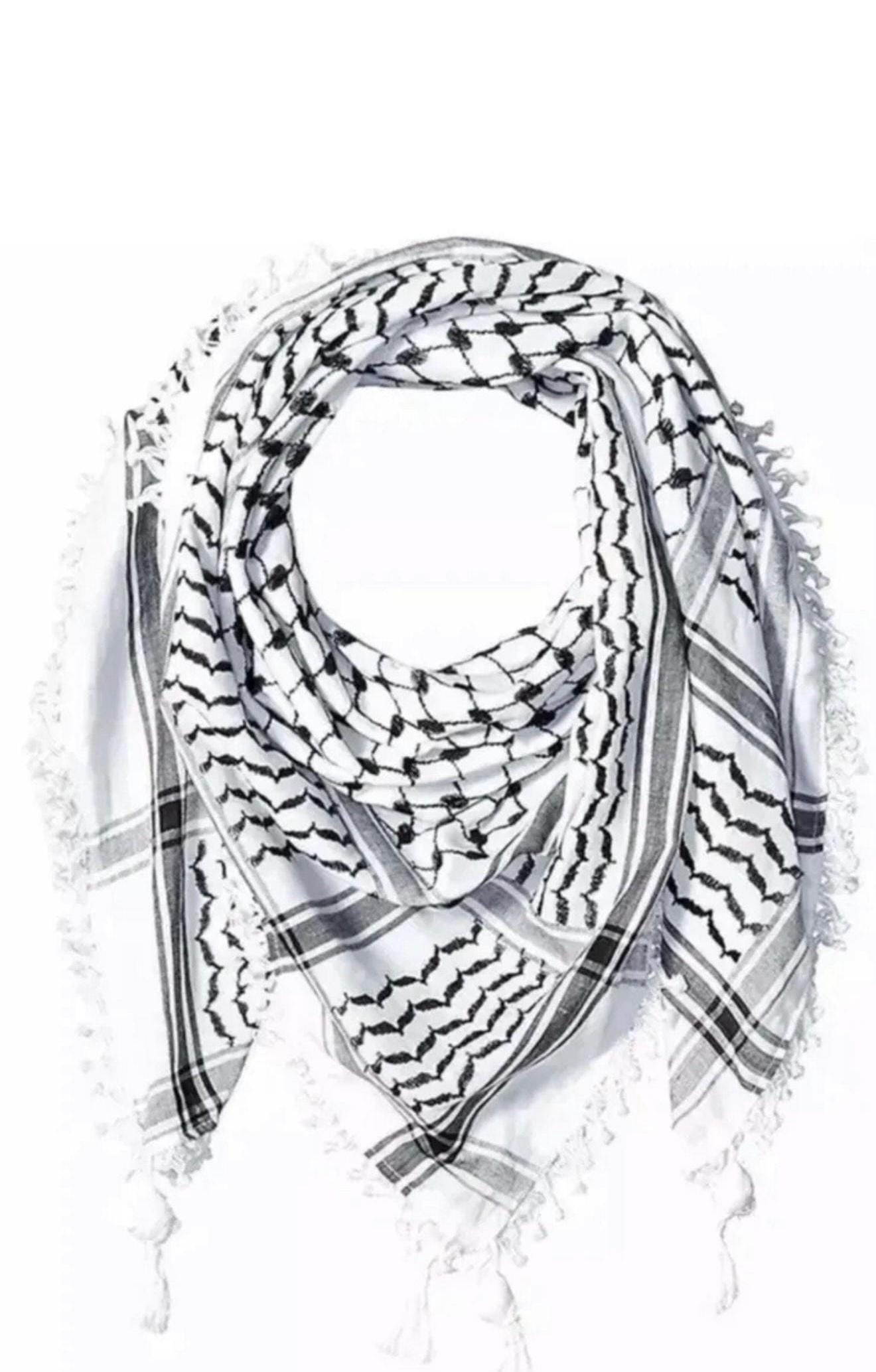 Keffiyeh (Palestinian Seller) White & Black Thick fringes and long Tassels Original Traditional Style Made in Palestine. Size is 52x52 Inch